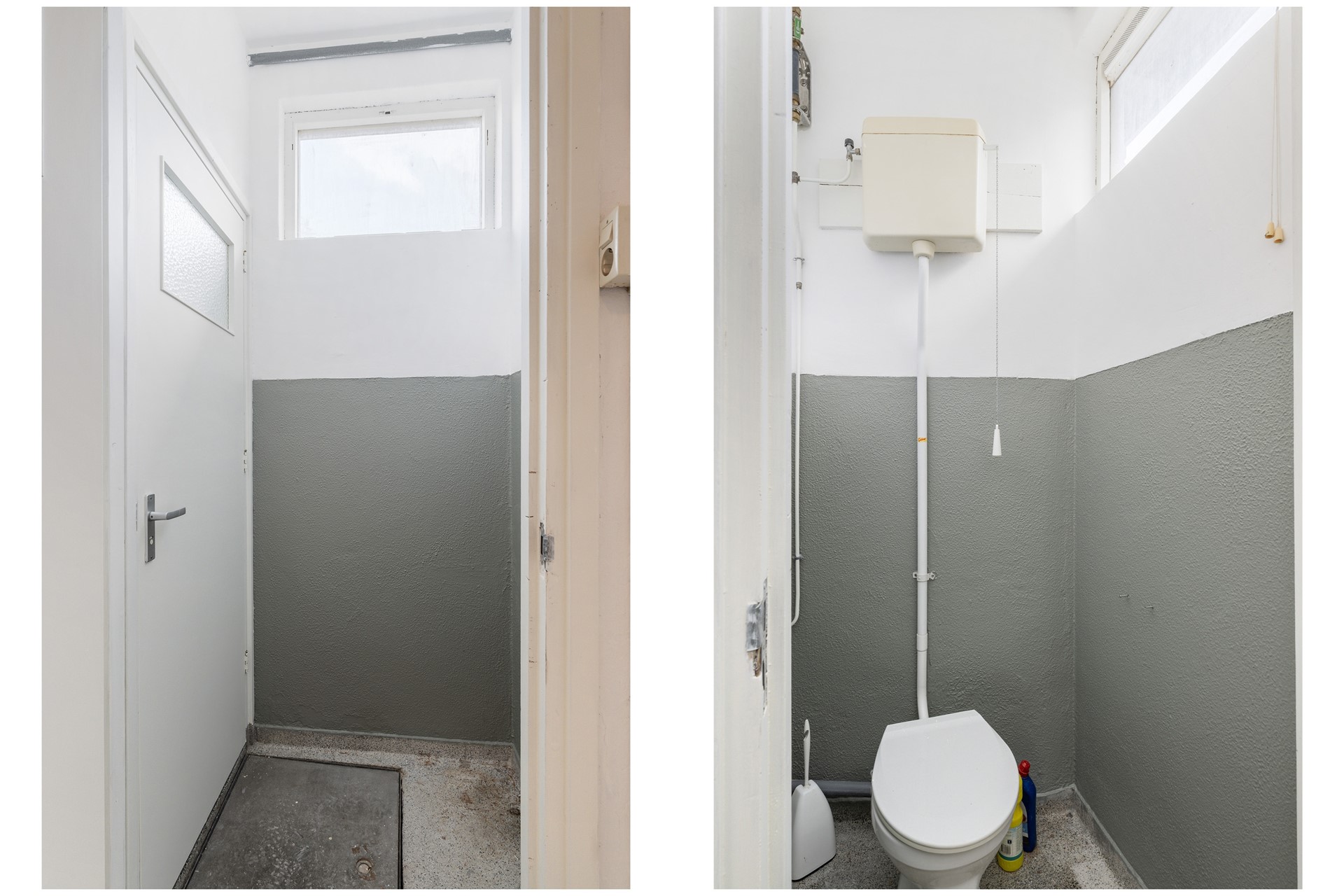 Aan de achterzijde van de ruimte is een wastafel (uit te breiden naar pantry) en een toilet.