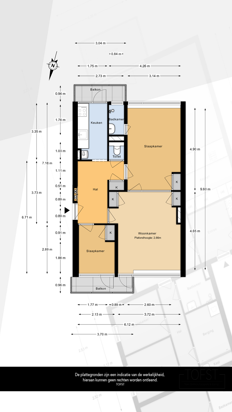 Alle verstrekte informatie moet beschouwd worden als een uitnodiging tot het doen van een bod of om in onderhandeling te treden. Er kunnen geen rechten worden ontleend aan deze woninginformatie. De Meetinstructie is gebaseerd op de NEN2580. Deze is zorgvuldig uitgevoerd, doch moet gezien worden als indicatie van de oppervlaktes.