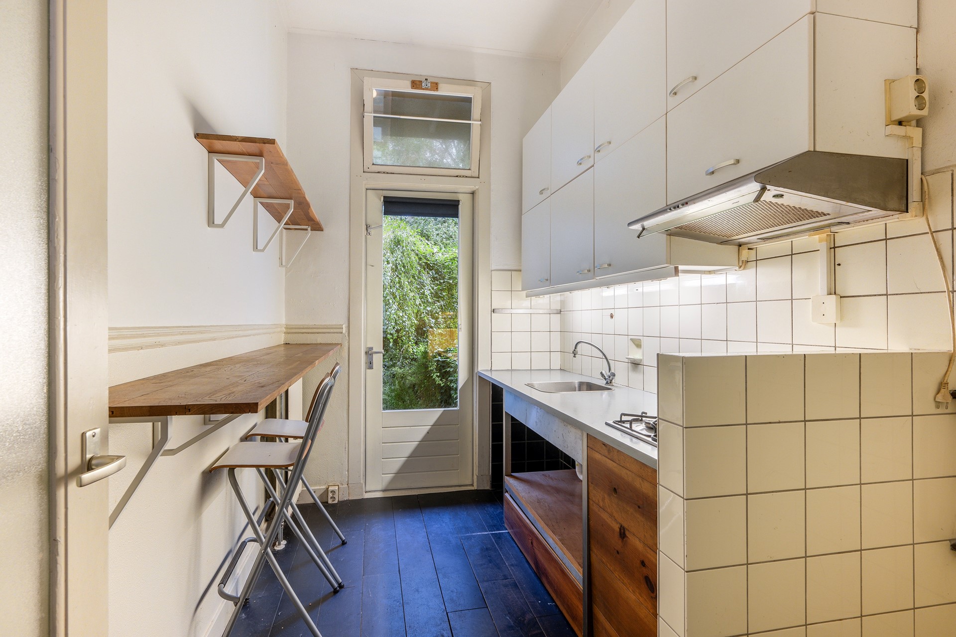 De keuken en badkamer met toilet zijn functioneel, maar eenvoudig en bieden een mooie gelegenheid om de ruimtes op termijn naar eigen smaak te vernieuwen.