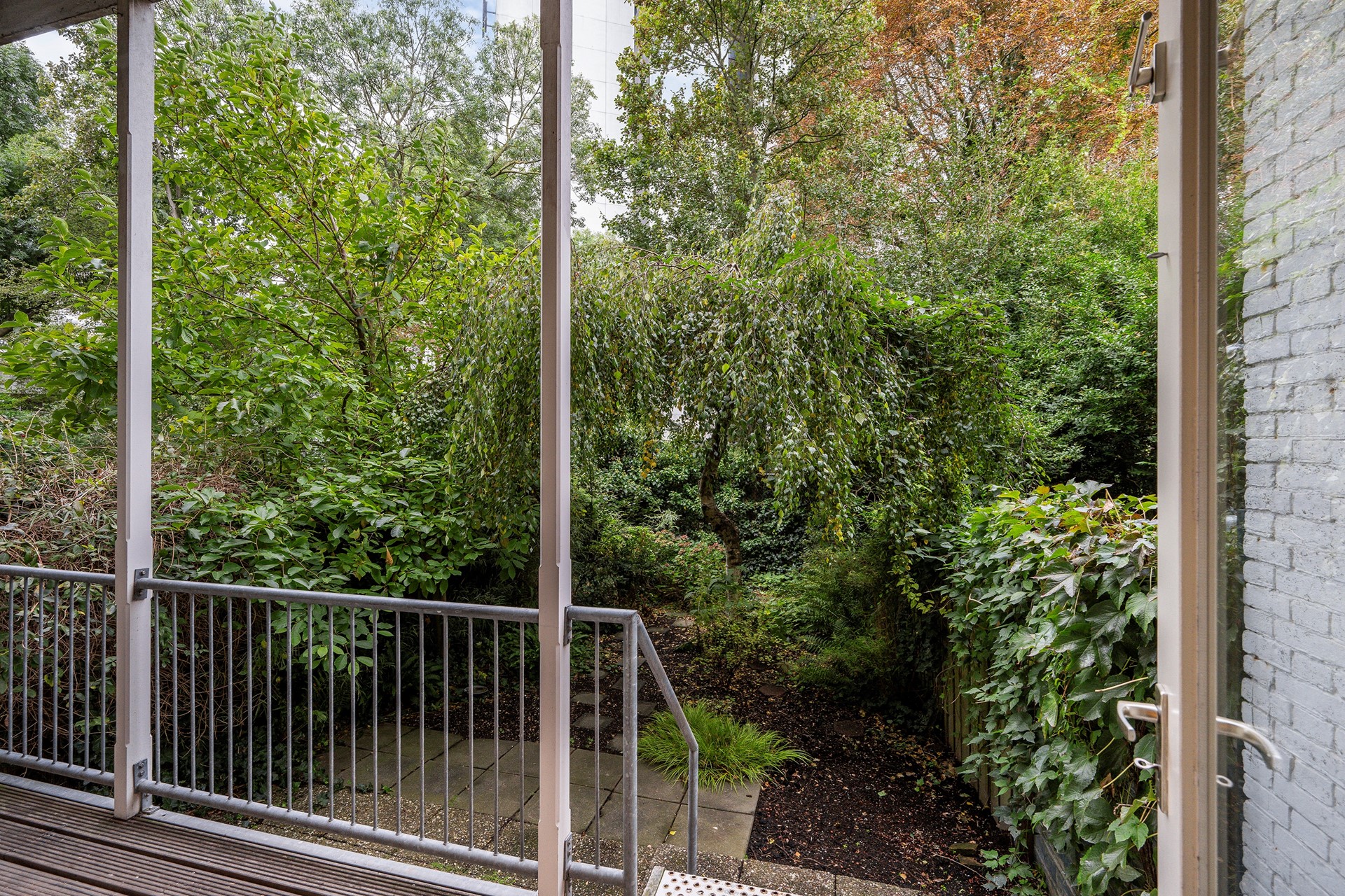De grote slaapkamer aan de achterzijde zorgt voor rust en privacy. Een mooie eye catcher zijn de plafondhoge openslaande deuren tussen de woonkamer en de slaapkamer. Door eveneens openslaande deuren aan de achterzijde van de slaapkamer, bereik je de veranda die een gevoel van Southern Comfort uitstraalt door de hoge houten pilaren en sfeervolle houten vloerdelen.