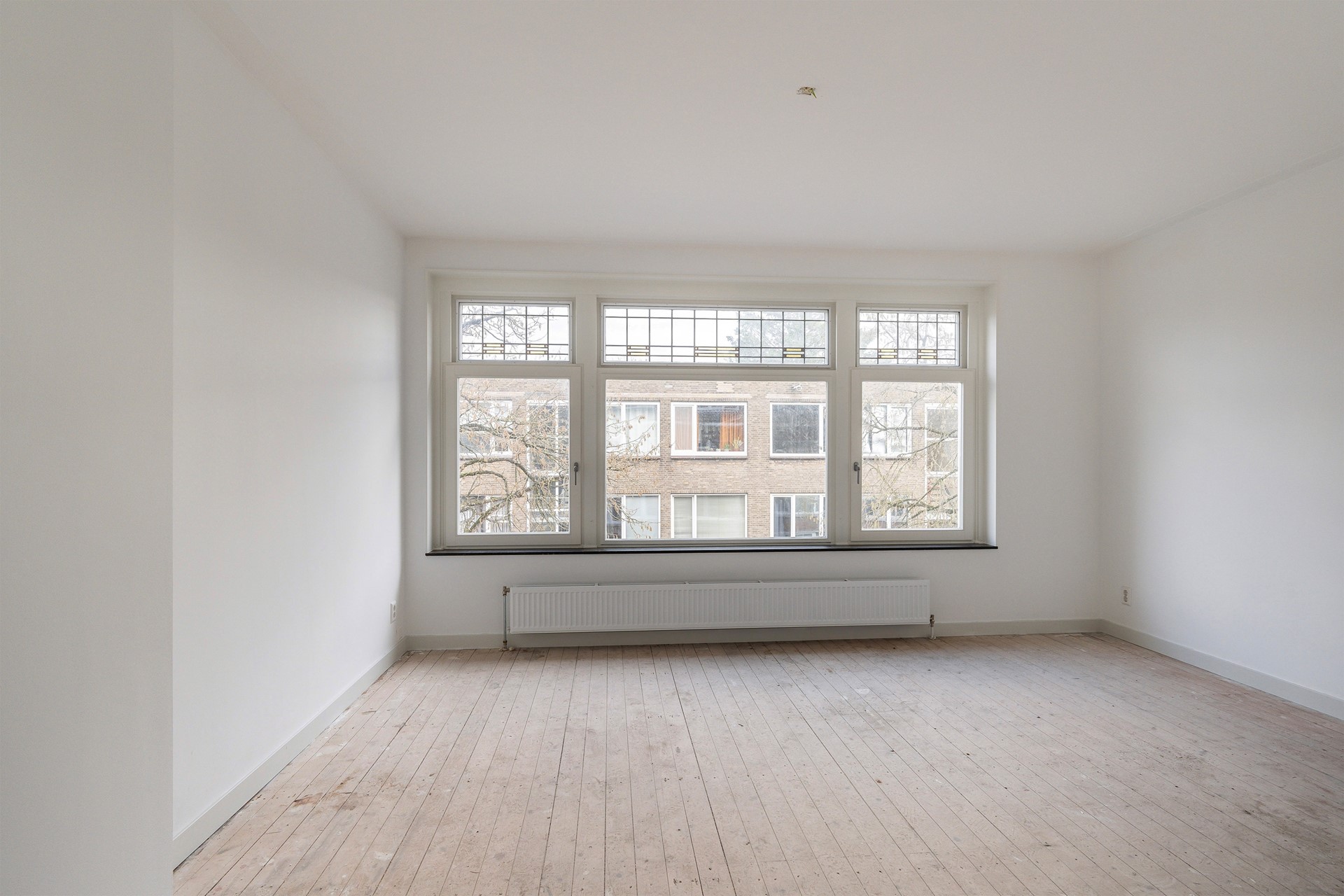 • Woonkamer aan voorzijde, bereikbaar via karakteristieke inbouwkast met glas-in-lood ensuite deuren; veel lichtinval.